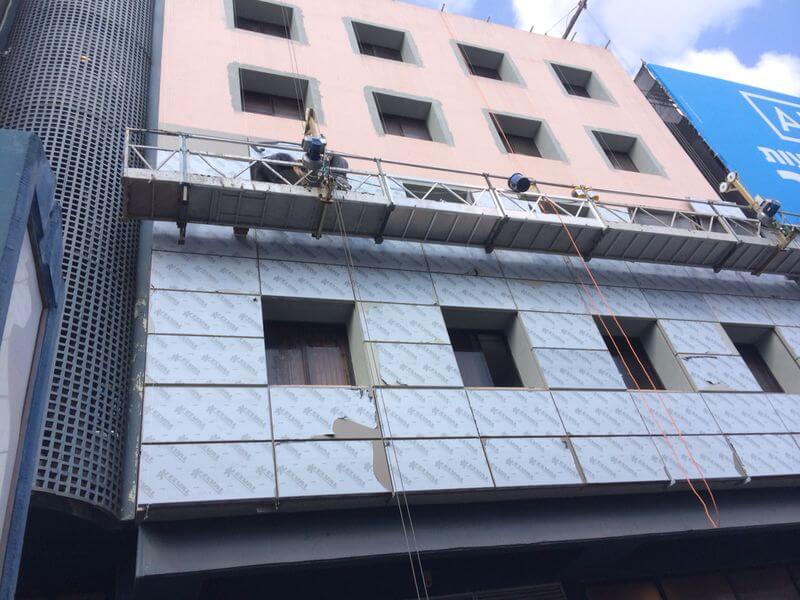 חיפוי אלומיניום 2 מ"מ התבצע בשיטת הרכבה זווית מקומי תוך שמירה על האיטום של המבנה . חידוש שלושה בניינים בחיפוי מעטפת מלאה.